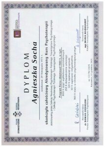 - Kurs psychoterapii w podejściu ISTDP rekomendowany przez ISTDP Institute Jona Fredericksona – w trakcie